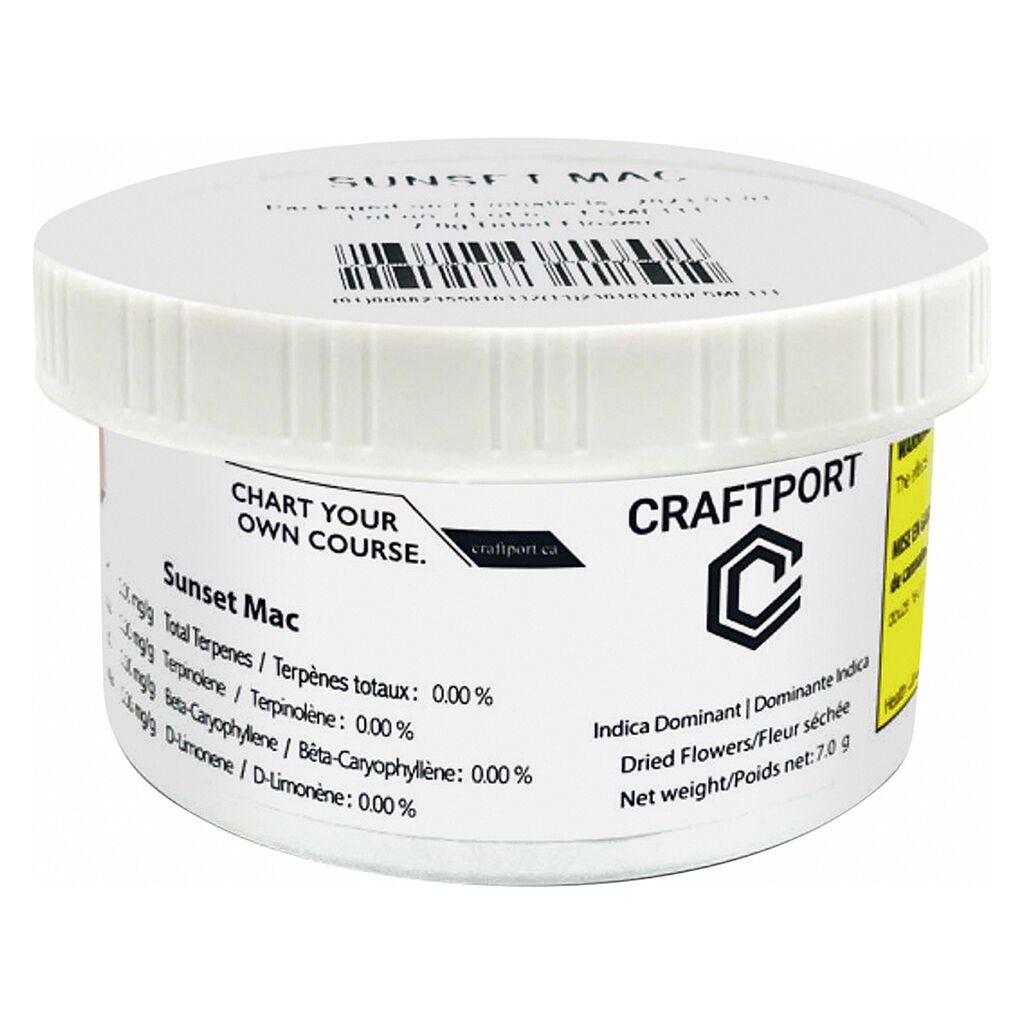 Craftport Cannabis' Sunset Mac is BC bud that's packaged in old school tuna can nitrogen purged packaging.